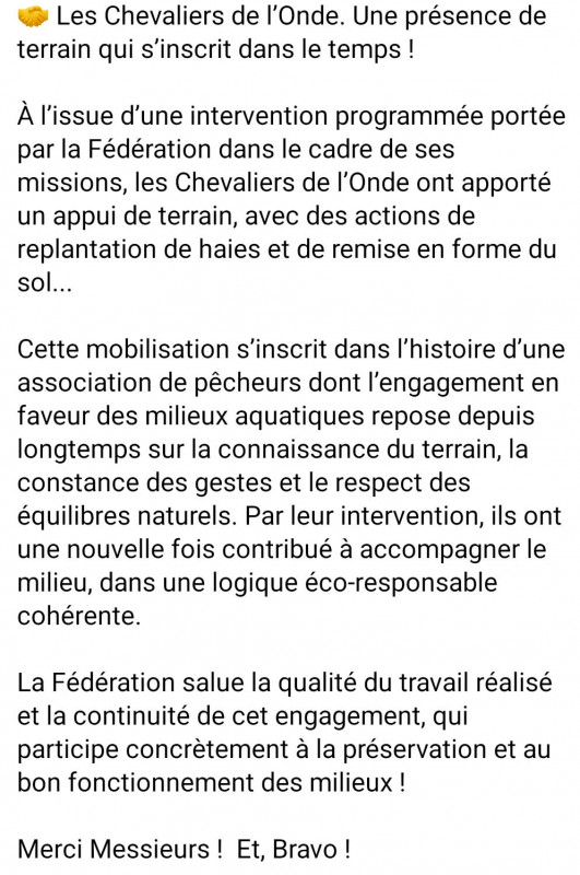 salué par la Fédération de Pêche