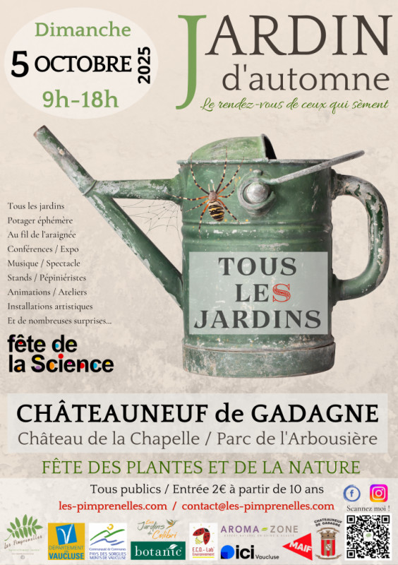 2- Participation au JARDIN D'AUTOMNE organisé par les Pimprenelles le 5 Octobre à Châteauneuf de Gadagne. Programme divertisant et instructif autour de thèmes variés : Jardins pour tous, Le Vaucluse, terre d'eau, au fil de l'araignée...