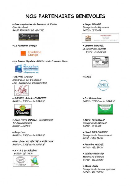 C'est grâce à leurs partenaires que les "Chevaliers de l'Onde" peuvent, chaque année, mener des actions pour assurer la sauvegarde du patrimoine de la Sorgue.