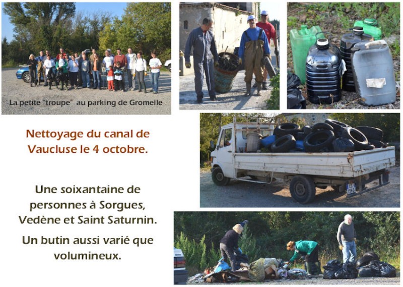 barrage. Le 4 octobre, une soixantaine de courageux ont effectué le nettoyage annuel du canal de Vaucluse avec l'aide des pêcheurs de Vedène et d'Entraigues.