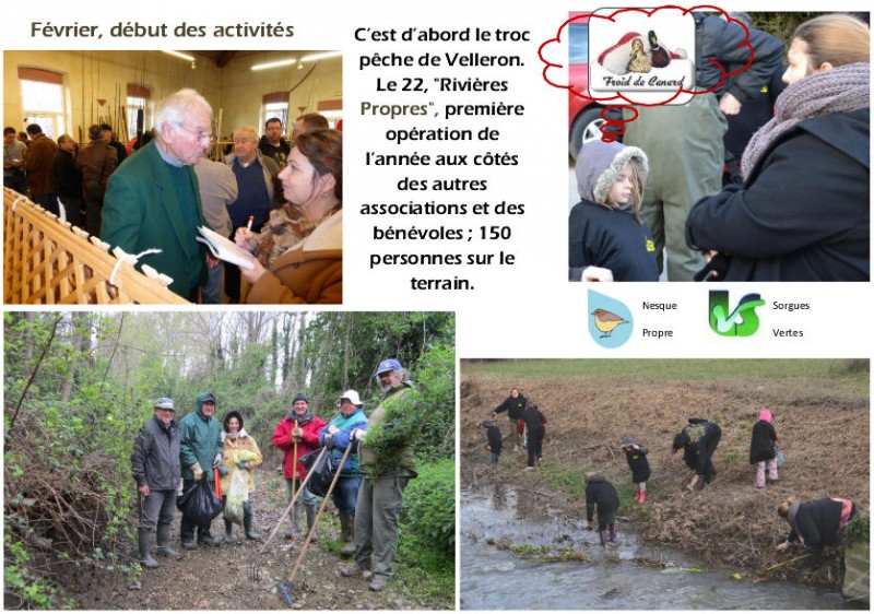 création. C'est également en février que s'est déroulée la journée départementales "Rivières propre". Nous nous sont retrouvés avec les différentes associations : "la Nesque Propre", "les Sorgues Vertes" et "l'Association Agréée pour la Pêche et la Protection du Milieu Aquatique", ainsi que des bénévoles de toutes les communes. Plus de 150 personnes ont participé à cette opération, le gros de la troupe des chevaliers étant à Velleron et au Thor (sur les chantiers de Monclard et du Crillon), mais aussi à Entraigues et Althen des Paluds.