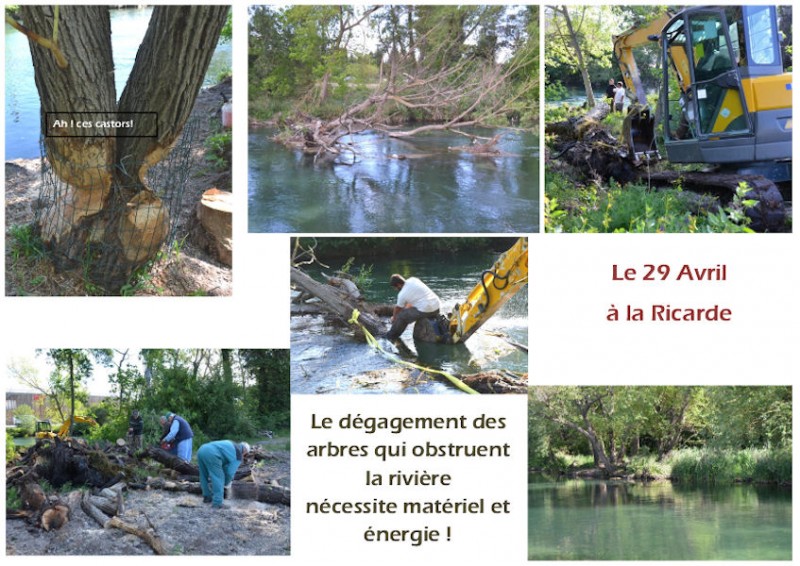 Ensuite, le 29, le nettoyage de la Ricarde. Une équipe s'est chargée de l'enlèvement des arbres de la Sorgue et du débroussaillage de l'espace Margaillan. La Fédération de Pêche nous a subventionné l'achat d'une débroussailleuse et d'une élagueuse sur perche pour nous faciliter la tâche. Le travail s'est poursuivi à plusieurs reprises, également à la Grande Paluds, sur l'îlot de Bontet.