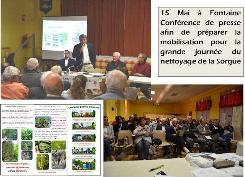 Le 15 mai, la traditionnelle conférence de presse s'est tenue à Fontaine de Vaucluse où Monsieur le Maire Rolland Pastor nous a accueillis avec beaucoup de gentillesse, afin de préparer la mobilisation pour le nettoyage de la Sorgue.