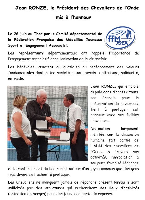 Le Président des Chevaliers de l'Onde honoré pour son engagement Posté le 06/07/2021 - Par MC B Hommage