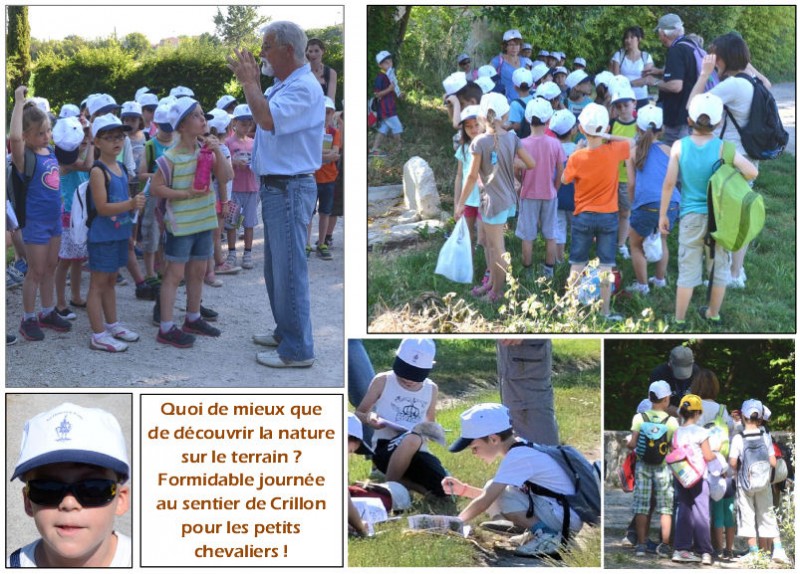 Nous sommes intervenus dans les lycées et collèges de la région, ainsi qu'auprès des tout petits des écoles communales de Velleron qui viennent avec leur maître à la découverte du sentier de Crillon (ici le 11 juin).