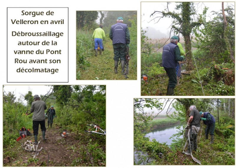 Puis ce fut le nettoyage de la Sorgue de Velleron le 23 avril avec le débroussaillage autour de la vanne du Pont Rou