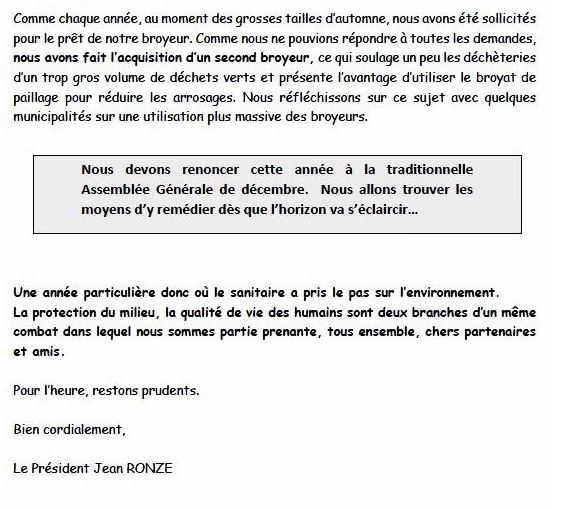 Lettre du Président Posté le 20/11/2020 - Par JM R Information