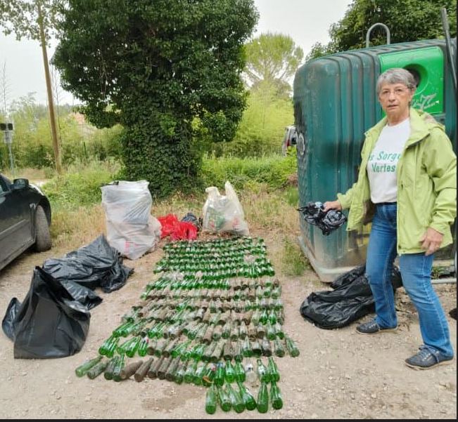 A Fontaine, Velleron, au Thor, à Entraigues, Saint Sat, des bénévoles qui avaient été equipés de sas, gants, pinces-mamasse-déchets ont déposés leur butin dans les conteneurs .