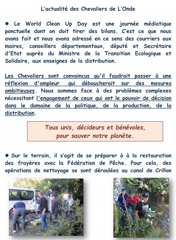 Dans l'actualité des Chevaliers de l'Onde. Posté le 08/10/2018 - Par MC B Information