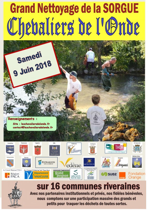 Les Chevaliers de l'onde donnent rendez-vous à tous les amoureux de la Sorgue qui sont prêts à donner quelques heures de leur temps pour le grand nettoyage annuel de notre précieuse rivière, de Fontaine à Bédarrides.