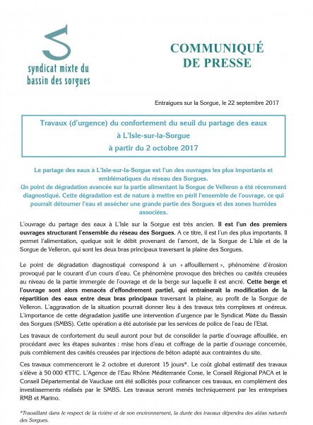 Travaux au Partage des Eaux Posté le 25/09/2017 - Par SMBS Information