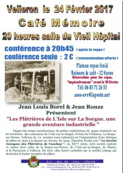 Les plâtrières à L'ISLE, LA ROQUE SUR PERNES, VELLERONConférence