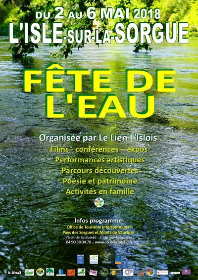 Autour de l'eau (de la Sorgue évidemment, mais pas seulement) différentes thématiques seront abordées à travers des manifestations variées : films, conférences, balades, traditions l'isloises, pique-nique...